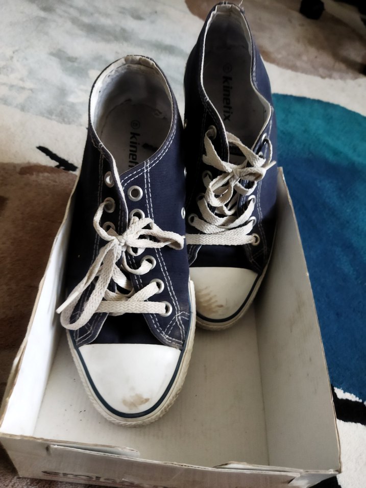Lacivert erkek spor ayakkabısı, bağcıklı tasarıma sahip. Günlük kullanım için uygun, trend ve karşı kültür tarzında.