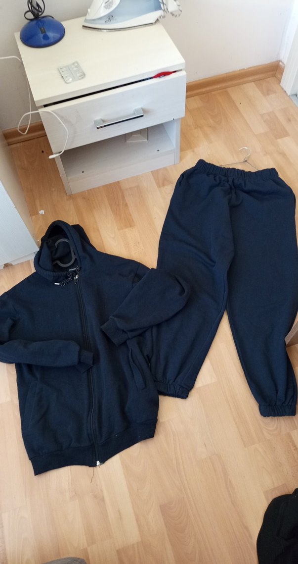 Erkek lacivert eşofman takımı, bol kesim ve yumuşak kumaş ile rahatlık sağlar. Fermuarlı kapüşonlu üst ve lastikli paça. üst biraz giyildi. slt giyilmedi. eşofman boyu 90 cm. swit 60 cm dir