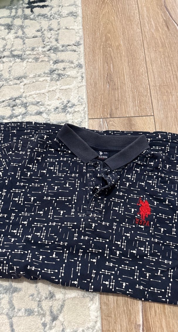 Erkek polo tişört, yakalı, kısa kollu ve bol kesimdir. Lacivert renkte baskılı deseni ve düğme detayları vardır. Günlük rahat kullanıma uygundur.
