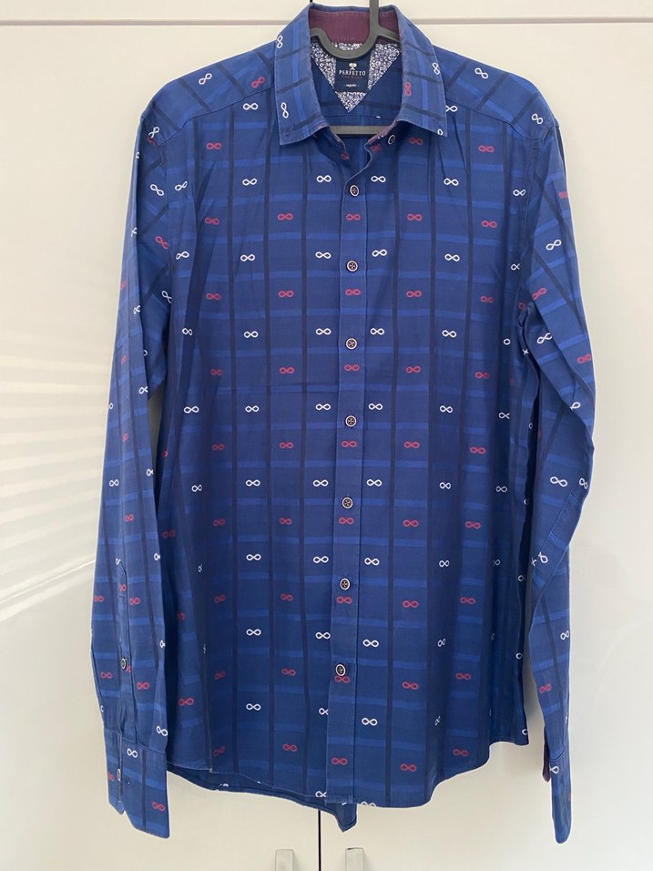 Bu erkek gömleği, yakalı, düğmeli uzun kollu ve regular fit kesimdedir. Lacivert renkli baskılı deseniyle iş ve ofis ortamına uygundur. Sentetik kumaş, sokak stili ve trend görünümler sunar.