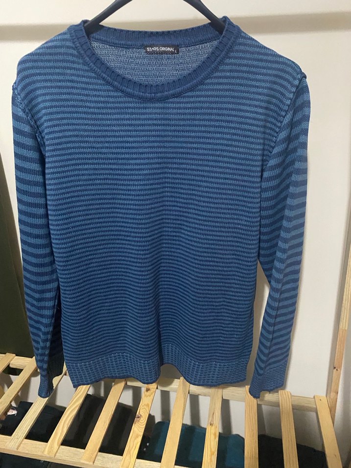 Erkekler için koyu mavi renkte, bisiklet yaka ve uzun kollu, örme triko kazak. Rahat kesim ve normal boyda, gündelik sokak stiline uygundur. Desensiz tasarımıyla her gün kullanılabilir.