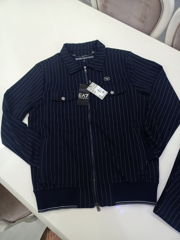 erkek için regular fit, fermuarlı ve kesimli yaka detaylı lacivert çizgili yumuşak kumaştan eşofman takımı. Günlük rahat kullanım için uygundur. ♀️