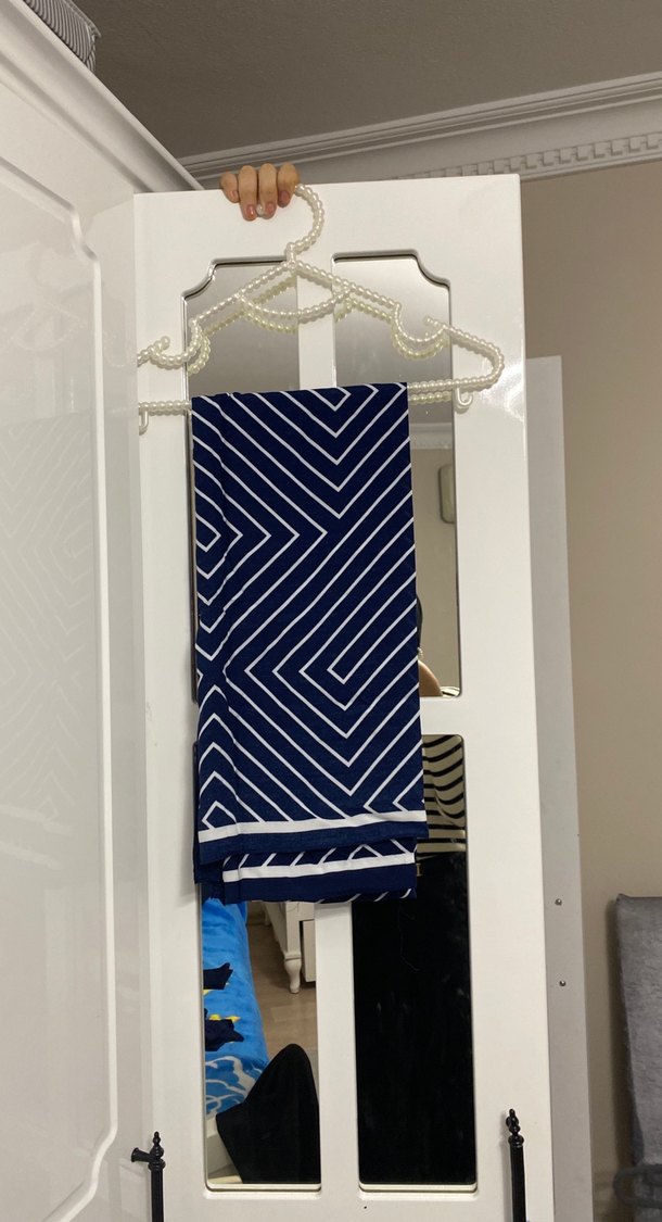 Erkekler için lacivert renkli, çağdaş çizgili desenli midi uzunlukta plaj havlusu. Günlük kullanıma uygun, Paris tarzı, şık ve rahat bir modeldir. ️