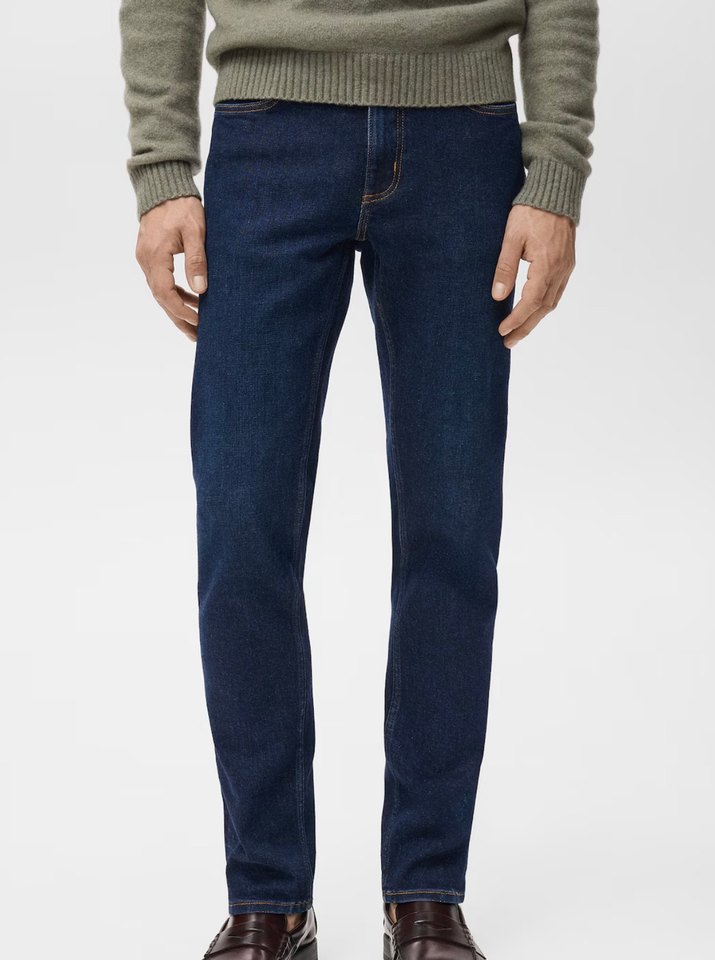 Erkekler için dar kesim ve normal boyda, dayanıklı denim kumaştan yapılmış, düz lacivert renkte günlük rahat kullanıma uygun pantolon. 1.80 boy 68 kiloya dar geldi