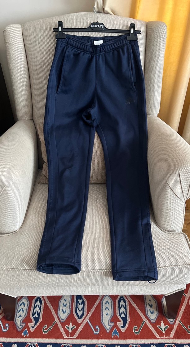 Lacivert sentetik kumaştan yapılmış, yan cepleri olan erkek için dar kesim eşofman altı. Trendy rahat stil için uygundur. Beli lastikli ve içten bağcıklı, esnetmeden yaklaşık 33 cm ve esneterek yaklaşık 45 cm, boyu yaklaşık 103 cm, paçası yaklaşık 16 cm, paçası ayarlanabilir lastikli, cepli, climalite kumaş, polyester, bedeni tahmini olarak belirlenmiştir