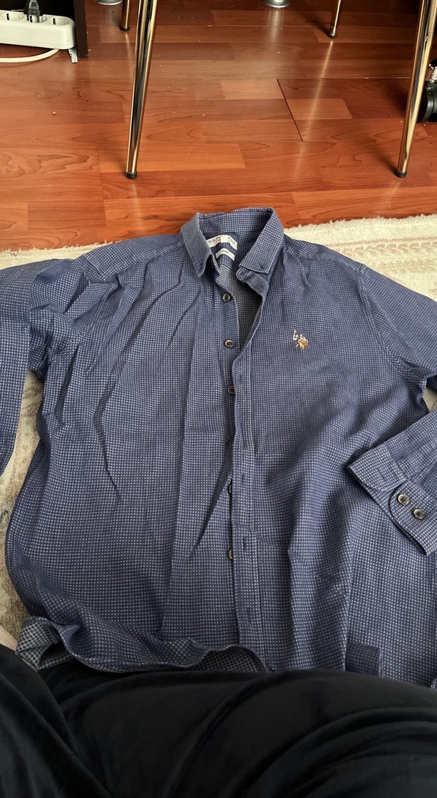 Erkekler için uzun kollu, düğmeli denim gömlek. Notlu yaka ve regular fit kesime sahip, koyu mavi renkte, günlük rahat stil için uygundur.