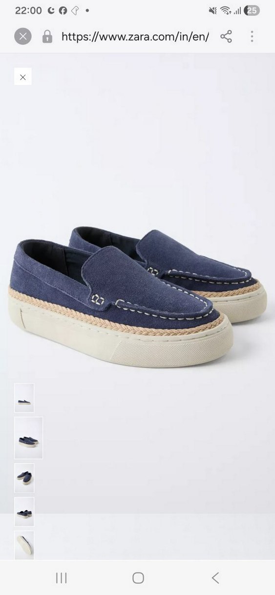 Lacivert denim ve gri tabanlı erkek espadril ayakkabı, örgü detaylarıyla gündelik şıklık sunar.