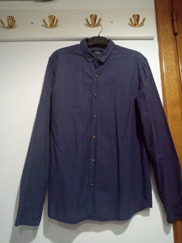 Erkek lacivert denim gömlek, düğmeli, uzun kollu ve regular fit kesime sahiptir. Günlük kullanıma uygun, sade ve şık bir sokak tarzı ürünü.