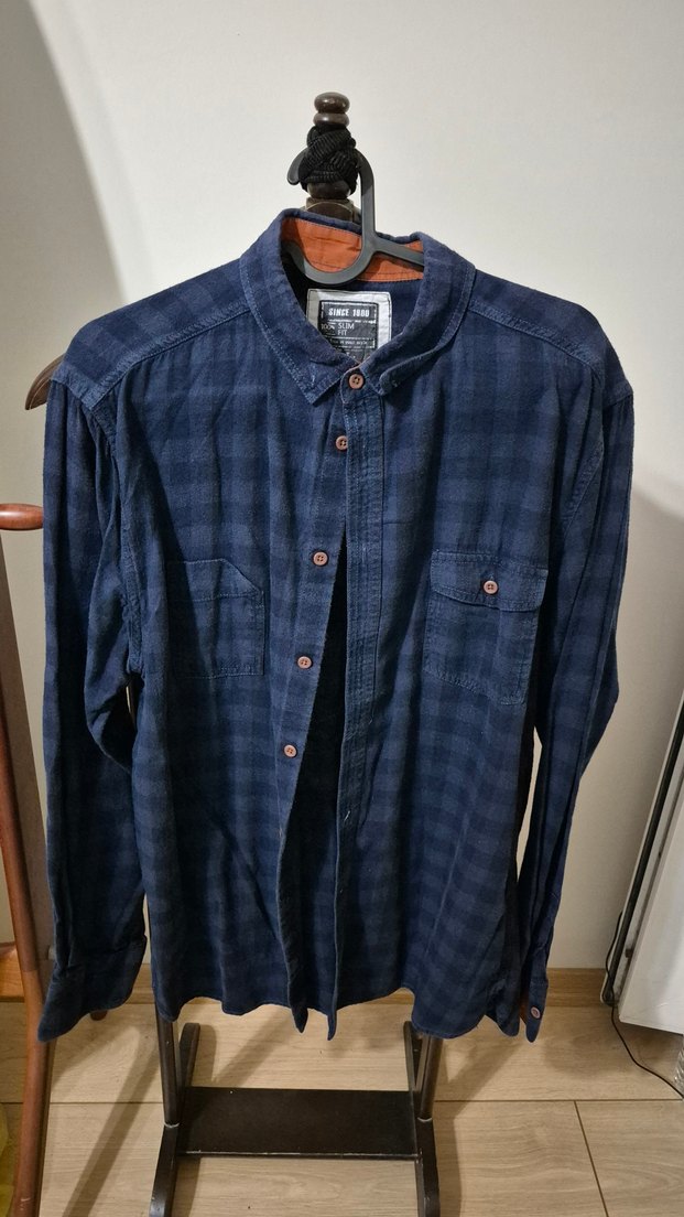 Lacivert renkte, düğmeli önü ve yakası kesik detaylı, uzun kollu erkek denim gömlek. Normal boy ve rahat kesim, günlük şıklık için uygun.