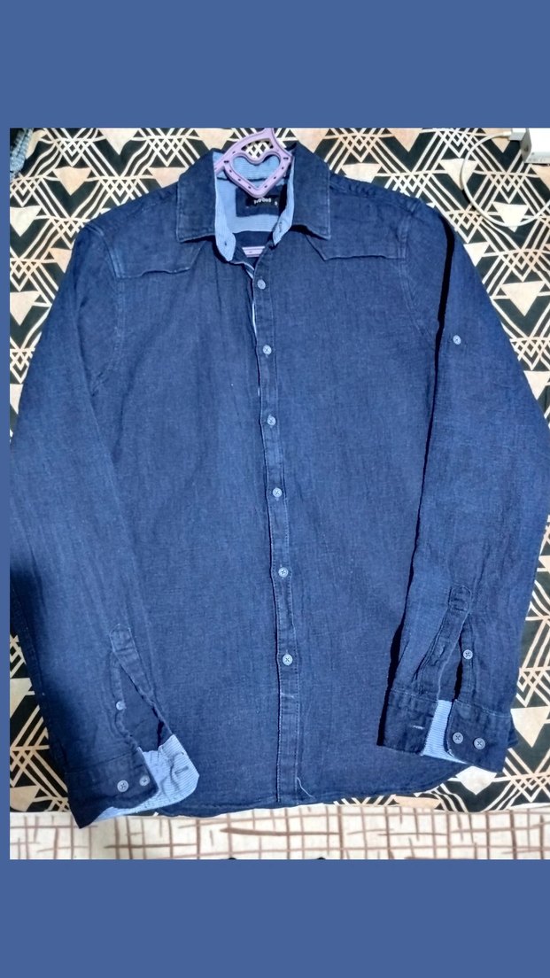 S Beden Tudors Marka Erkekler için lacivert renkte, düğmeli, uzun kollu denim gömlek. Normal kesim ve klasik yaka ile günlük rahat kullanıma uygundur.