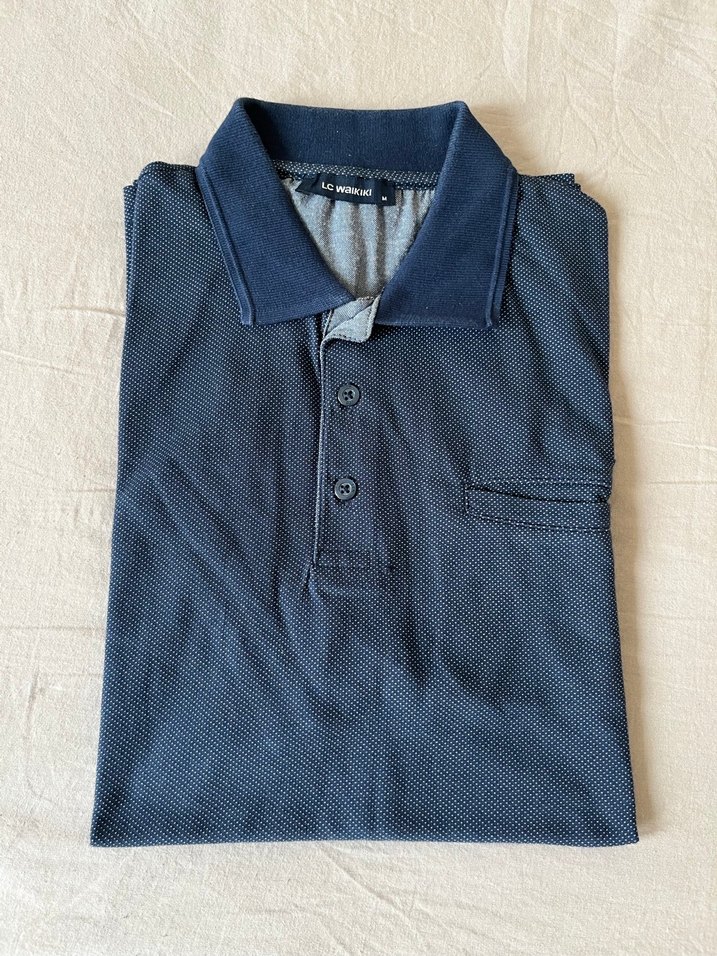 Erkekler için kısa kollu, düğmeli ve yakalı lacivert denim polo tişört. Rahat kesimiyle günlük sokak stiline uygundur.