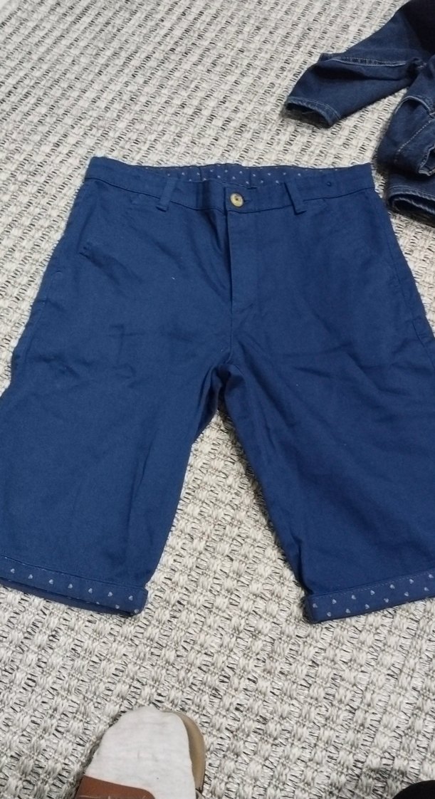 Lacivert renkli, düğmeli ve regular fit kesime sahip denim erkek şort. Hafif parlak kumaşıyla trend bir görünüm sunar. Kemeri var