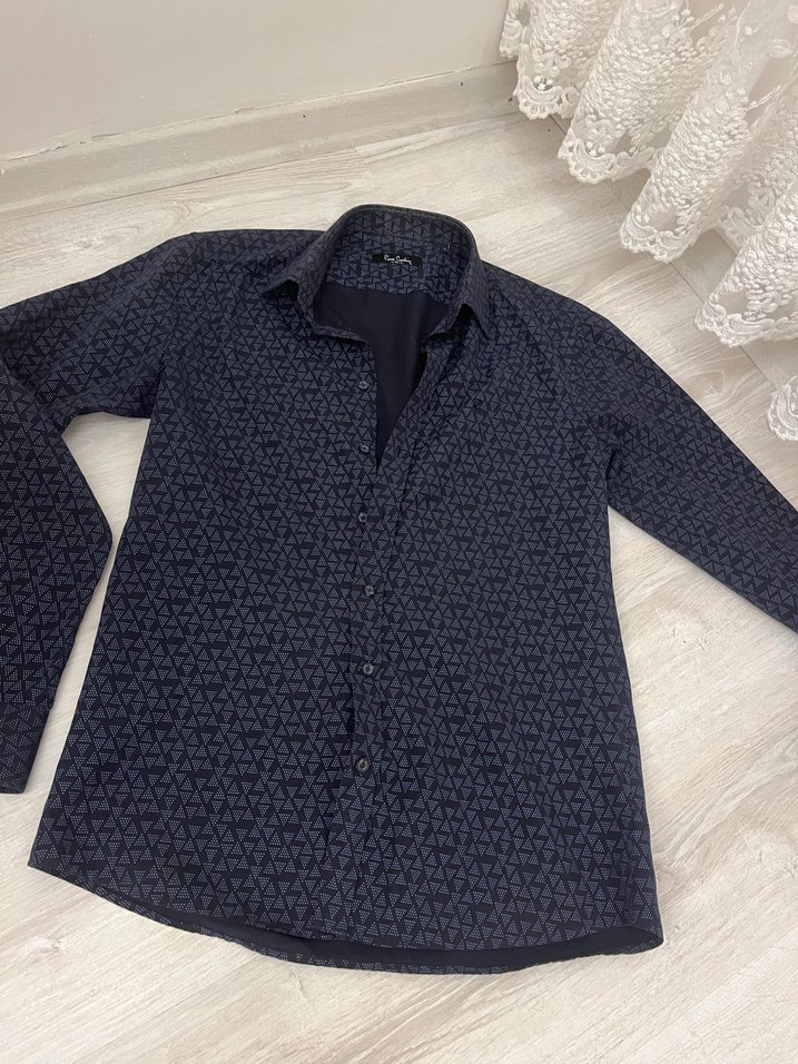 Erkekler için uzun kollu, düğmeli ve yakalı gömlek. Lacivert renkli baskılı desen ve regular fit ile günlük rahat sokak stiline uygundur.