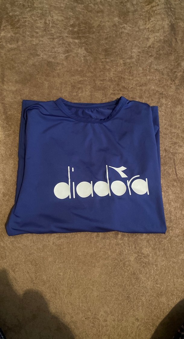 koyu lacivert Diadora baskılı spor içlik, rahat kesim, bisiklet yaka ve uzun kollu. Yumuşak ve sıcak hıssettırır urun az kullanıldı