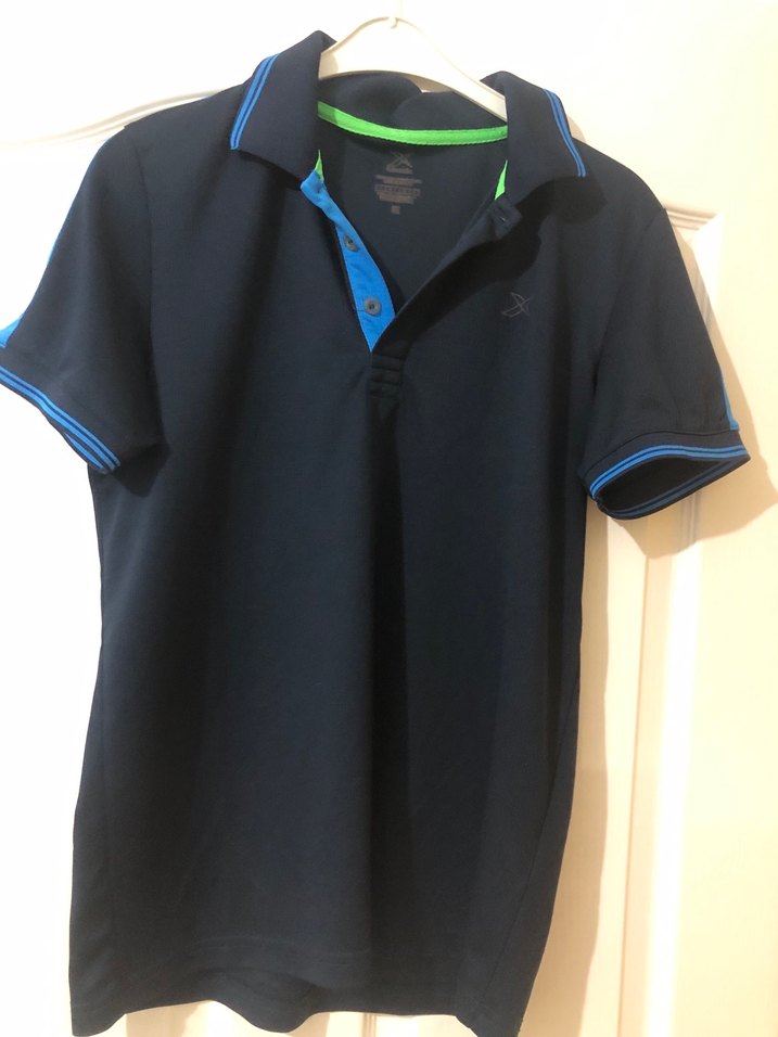 Erkekler için, kısa kollu ve yakalı, düğmeli ve baskılı detaylı lacivert polo tişört. Sıkı kesim ve sentetik kumaştan, günlük kullanıma uygun.