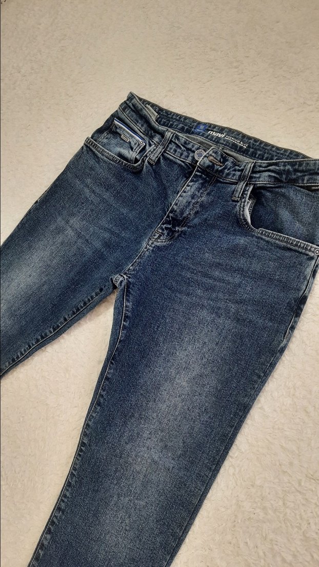 Erkekler için lacivert düğmeli ve regular fit denim jean. Desensiz, normal boyda ve günlük kullanım için uygundur.