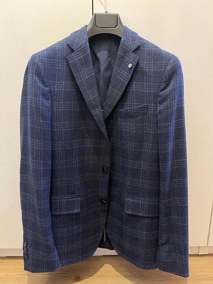 Lacivert renkte, ekose desenli, slim fit erkek takım ceketi. Düğmeli, uzun kollu ve klasik modern tarzda, ofis için uygun bir modeldir. Mango Man 48 beden