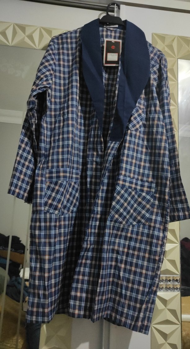 Erkek Lacivert Ekose Desenli Uzun sabahlık