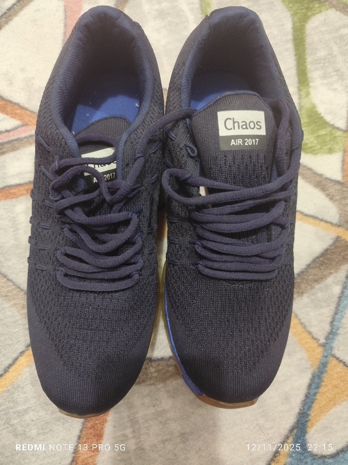 Erkekler için lacivert elastik bağcıklı ve kauçuk tabanlı sneakers. Dil kısmında 'Chaos AIR 2017' yazısı bulunur.