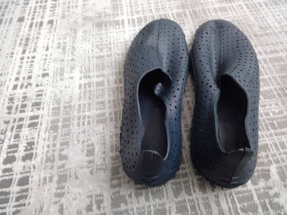 Koyu lacivert renkte, lastikli ve kauçuk malzemeden yapılmış erkek su ayakkabısı, minimal tasarıma sahip ve günlük kullanım için uygundur.