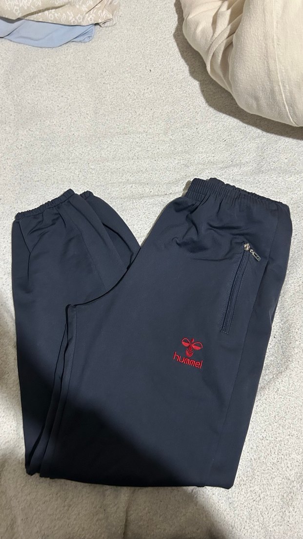 Erkek için lacivert renkli, bol kesim ve fermuarlı ceplere sahip yumuşak ve sıcak kumaştan eşofman altı. hummel logosu sportif bir detay katıyor.