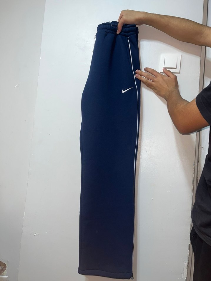 Lacivert renkli, regular fit erkek eşofman altı, fermuarlı cepleri ve sentetik kumaşıyla sokak modasına uygun rahat bir görünüme sahiptir.