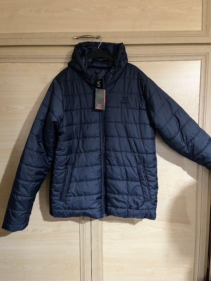 Erkekler için lacivert, fermuarlı ve uzun kollu, rahat ve yumuşak kumaştan günlük kullanıma uygun mont.