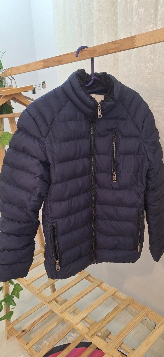 Erkek mont, fitted kesim, kesimli yakalı ve uzun kolludur. Yumuşak, sıcak kumaştan yapılmış, çoklu fermuarlı cepleri ve ön fermuarlı kapanışı vardır. Koyu lacivert renkte ve midi boydadır. Az kullanildi sapasaglam ,cok kaliteli .