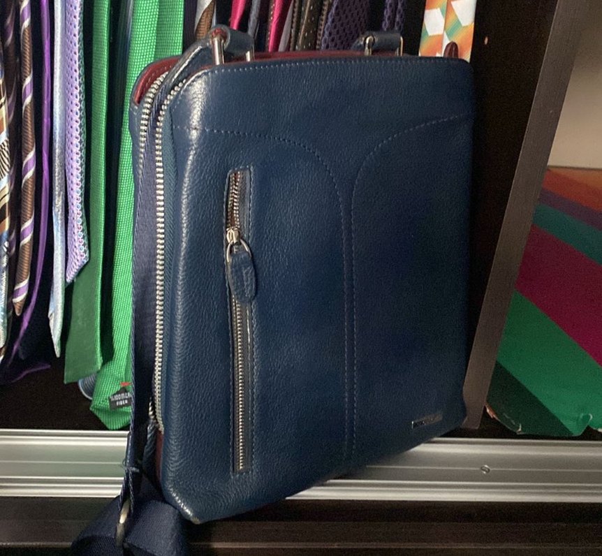 Lacivert renkte erkek omuz çantası, fermuarlı tasarımıyla iş ve günlük şıklığı bir araya getiriyor. Düz yüzeyli ve kompakt yapıda.