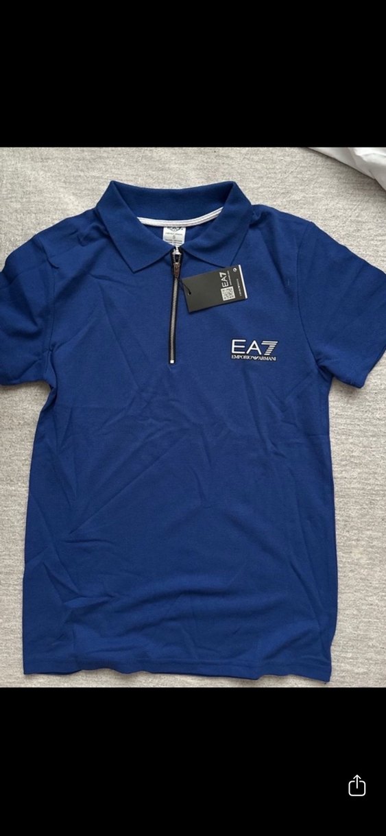 Erkek çocuklar için fermuarlı yakalı, kısa kollu ve vücuda oturan lacivert polo tişört. Yumuşak ve sıcak kumaştan, göğsünde baskılı EA7 logosu bulunur.