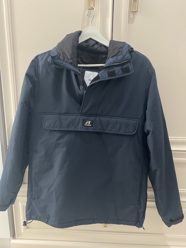 Lacivert renkte, yüksek yakalı ve fermuarlı cepli street wear ceket. Rahat kesim, uzun kollu ve midi boyda, dış mekan kullanımı için uygun yumuşak ve sıcak kumaştan yapılmıştır.