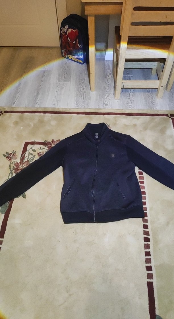 Erkekler için dar kesim, uzun kollu, fermuarlı ve bisiklet yaka sweatshirt. Yumuşak kumaştan üretilmiş, lacivert renkte ve sade tasarımlı, günlük kullanım için uygundur.