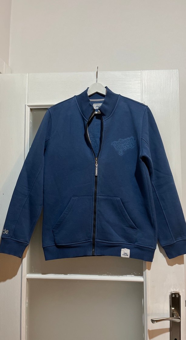Erkek lacivert renkte, fermuarlı ve uzun kollu sweatshirt. Regular fit kesimi ve sade tasarımıyla günlük kullanıma uygundur.