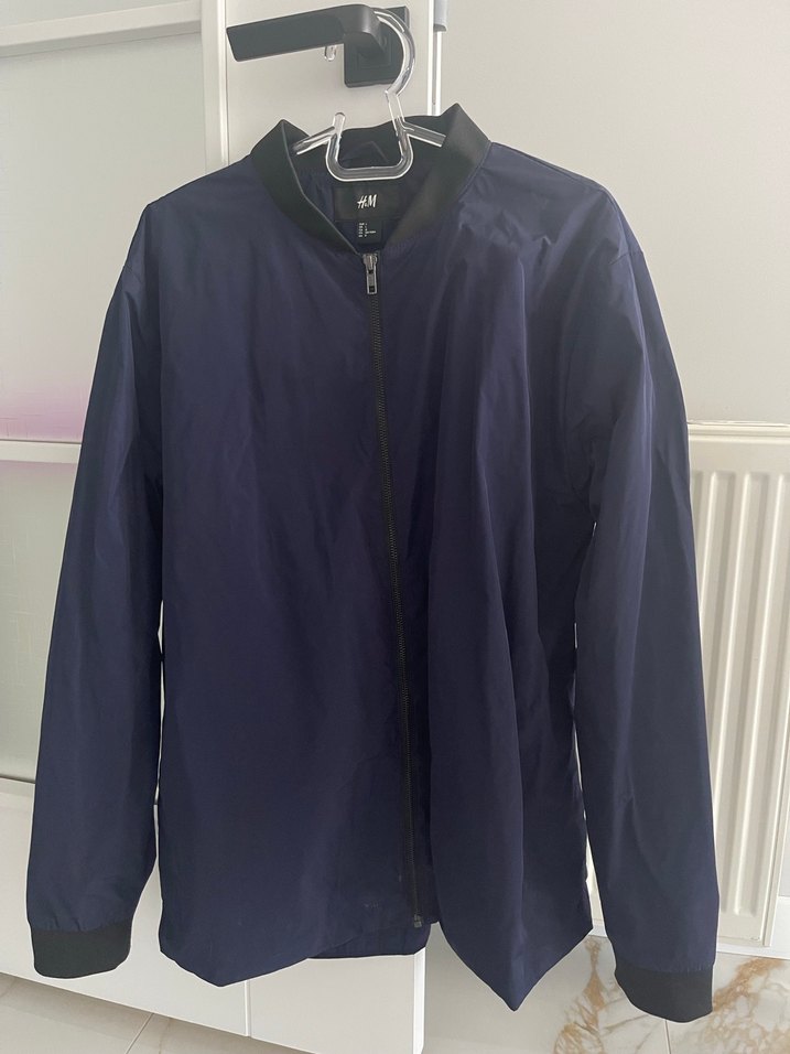 Bu erkek lacivert yağmurluk, yüksek yakalı ve fitted kesime sahiptir. Uzun kollu ve fermuarlıdır, sentetik kumaştan üretilmiştir, günlük kullanım için uygundur. ️