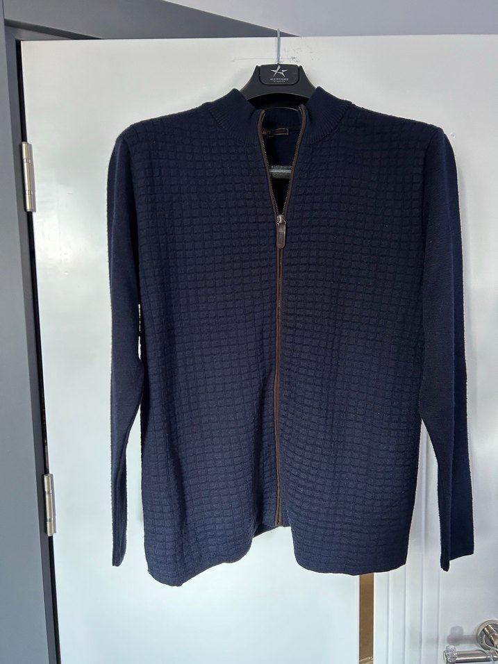 Erkek lacivert yün hırka, fermuarlı ve notch yaka detaylıdır. Uzun kollu, regular fit ve desen içermeyen rahat bir üründür. Günlük kullanıma uygundur.