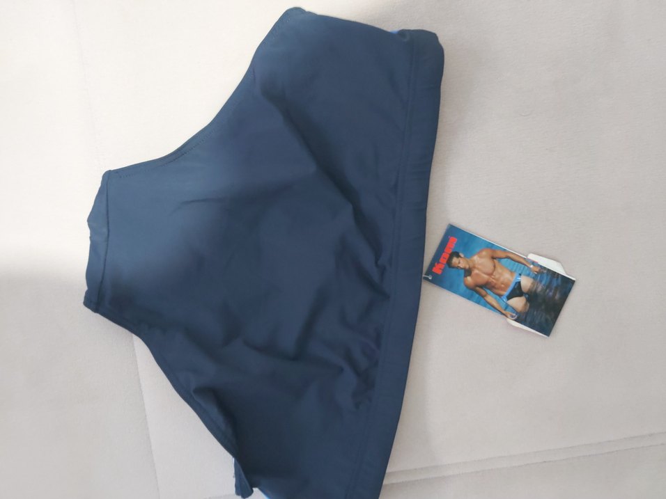 Erkekler için fermuarlı, dar kesim, koyu lacivert renkte yüzme şortu. Normal uzunlukta, düz ve desensiz tasarımıyla spor ve sokak giyimine uygundur.