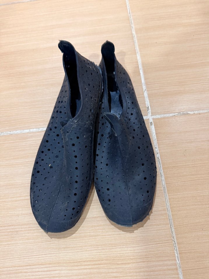 Kauçuk malzemeden yapılmış, koyu lacivert renkte erkek su ayakkabısı. Minimalist ve düz tasarıma sahip, kolay giyilen velcro bantlı günlük kullanım için uygundur.