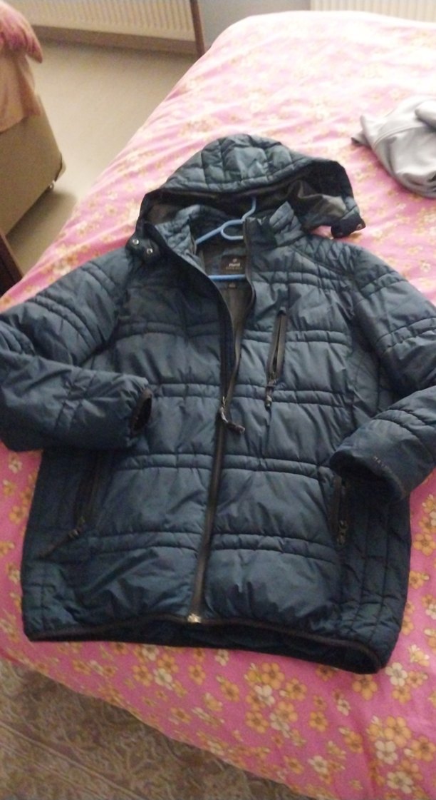 Erkek lacivert mont, fermuarlı ve kapüşonlu tasarıma sahip. Uzun kollu, normal uzunlukta ve rahat kalıplı, sokak stiline uygun şık bir parça.