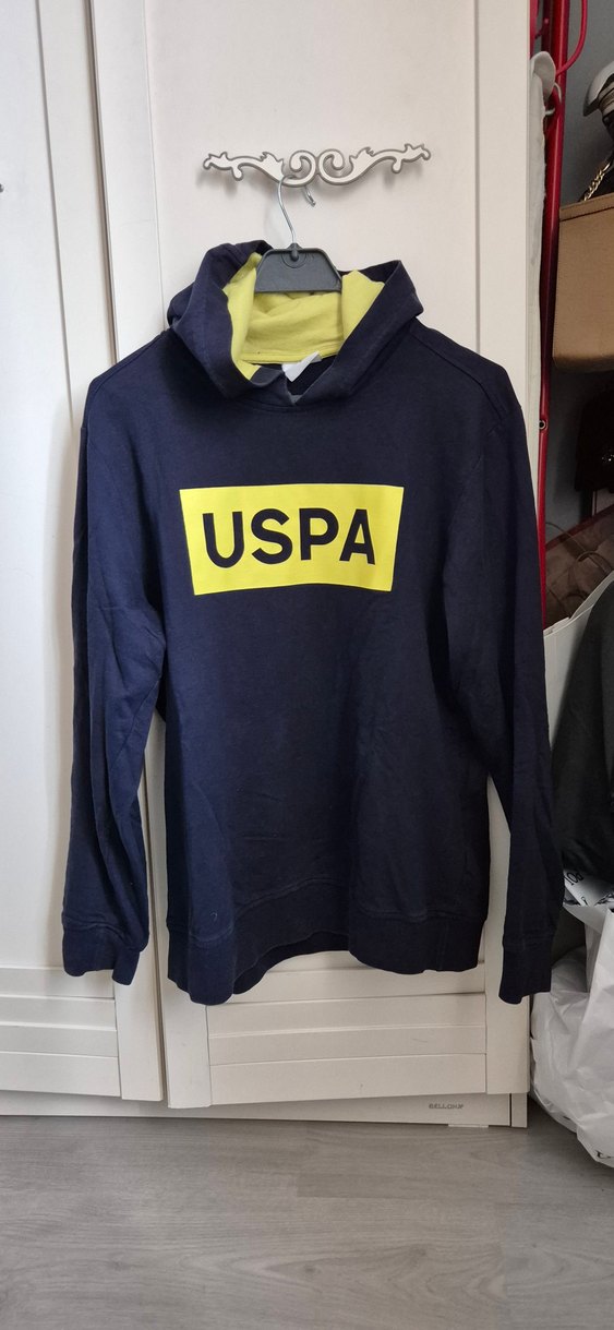 Erkek için, bisiklet yaka, uzun kollu ve rahat kesimli sweatshirt. Yumuşak kumaştan üretilmiş, önünde koyu sarı USPA logosu bulunur.