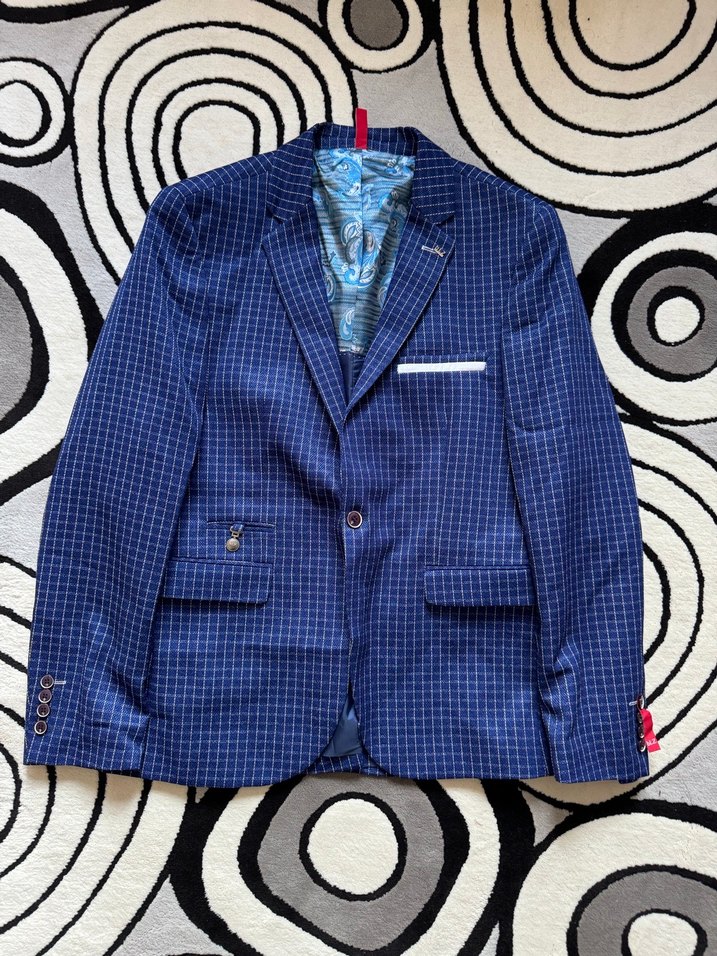 Erkek Lacivert Kareli slimfit ceket sıfır L/XL beden