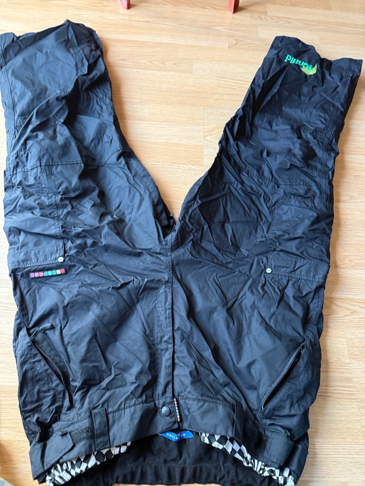 Lacivert, fermuarlı ceplere sahip, sentetik kumaştan üretilmiş, dar kesim erkek kayak pantolonu. Outdoor ve sokak stiline uygun, athleisure tarzıyla modaya uygun.