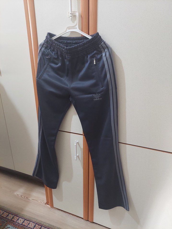 Erkek çocuklar için kemerli, yan şeritli, lacivert renkli fitted denim eşofman altı, sokak modasına uygun.