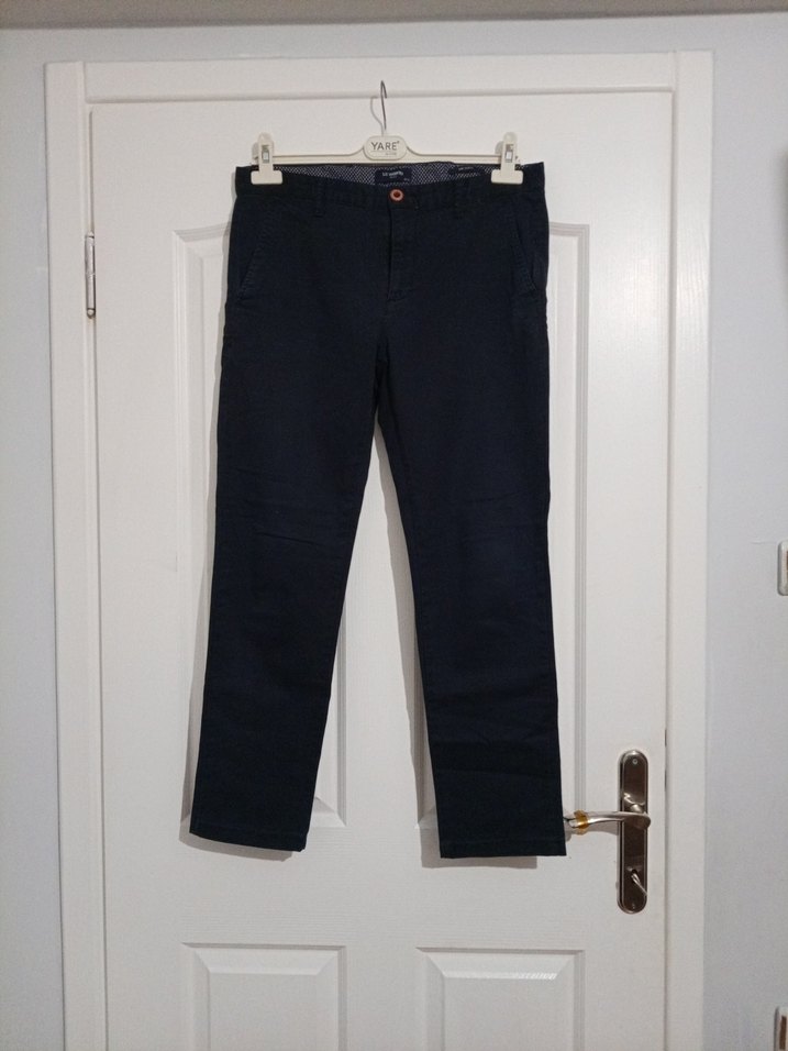 bel 53cm.boy 96cm Erkekler için lacivert renkli, kemerli, normal boy ve regular fit kesime sahip denim pantolon. Günlük ve ofis stiline uygun sokak giyimi tarzında.