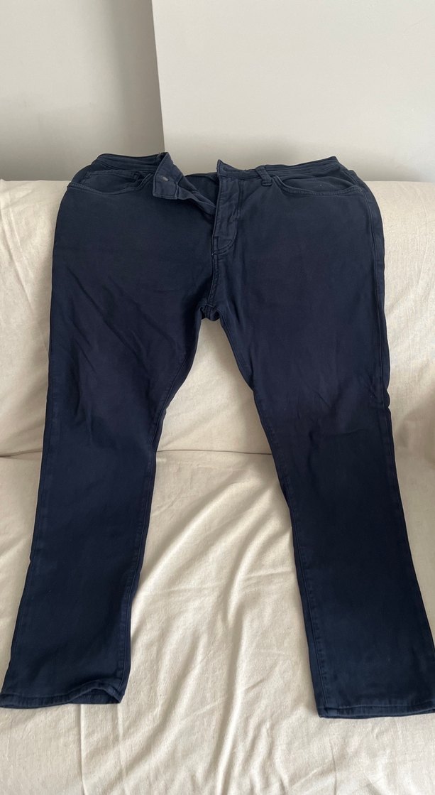 Erkekler için lacivert renkli, kemerli, normal boyda ve regular fit denim pantolon. Günlük kullanıma uygun rahat bir tarz sunar.
