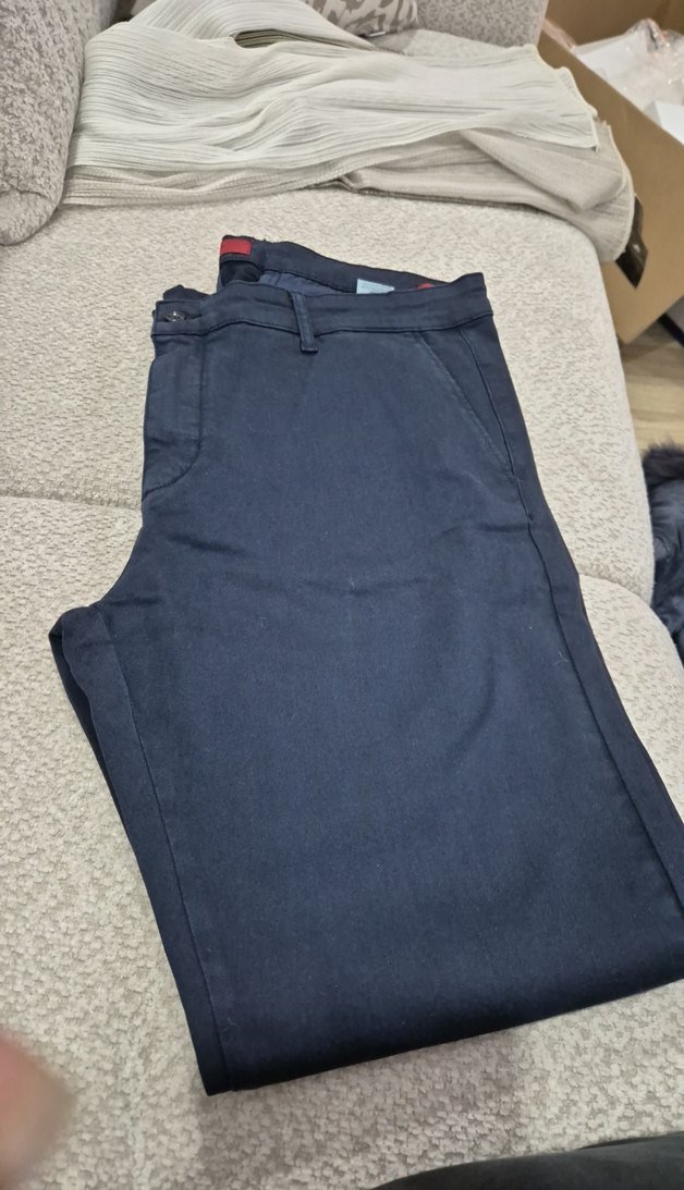 Erkekler için lacivert renkli, kemerli ve regular fit kesimli denim pantolon, günlük ve sokak tarzına uygun.