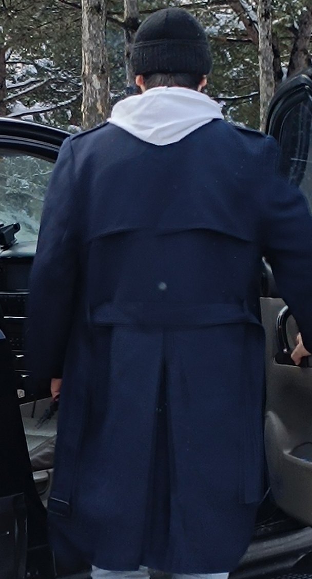 Erkek lacivert kaban, kemerli ve normal boyda, yakalı Klasik, sade ve sokak stiline uygun, yumuşak ve sıcak dokuludur.