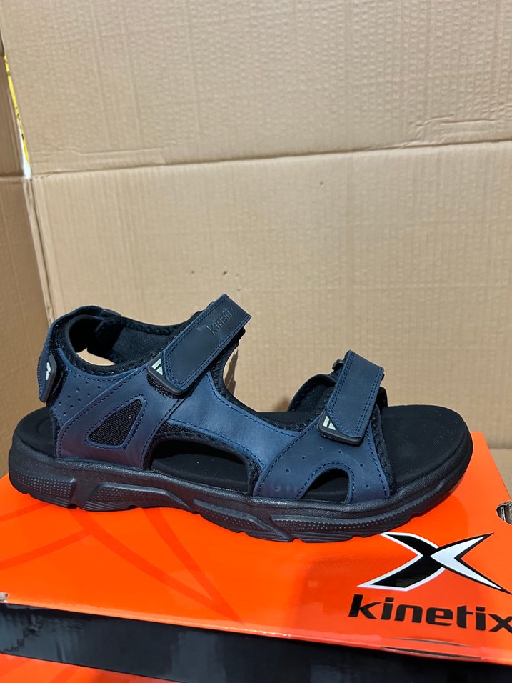Kinetix markalı, kauçuk malzemeden yapılmış, cırtcırtlı koyu mavi erkek sandalet, dış mekan ve sokak stili için uygundur.