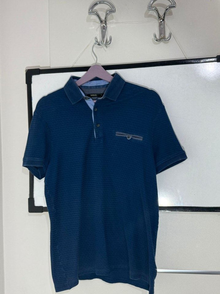 Erkekler için lacivert renkli, kısa kollu, yakalı ve düğmeli önü olan polo tişört. Normal boyda, regular fit ve sentetik yumuşak kumaştan üretilmiştir.
