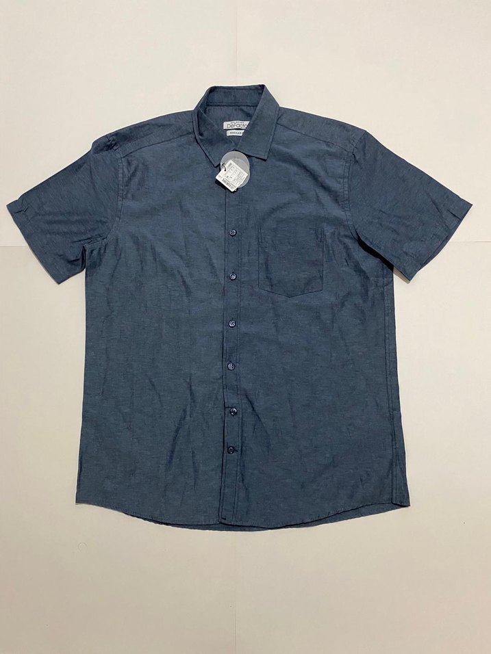 Bu erkek gömlek, kısa kollu ve düğmeli ön kısmıyla lacivert denim kumaştan yapılmıştır. Regular fit ve tek cep detayına sahiptir, günlük kullanıma uygundur. Etiketli, sıfır üründür. Regular kalıptır, slim fit değildir. Renk etikette “navy” olarak geçmektedir. Kumaşı tok ve kaliteli duruşa sahiptir. Ölçüler fotoğraflarda mevcuttur. Detaylı inceleyebilirsiniz. #erkekgömlek #navy #regularfit #etiket #temizürün #gömlek #giyimekstra