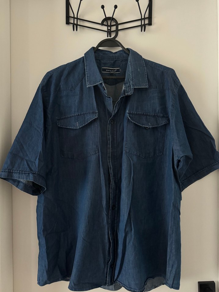 Erkek Lacivert Kısa Kollu Denim Gömlek